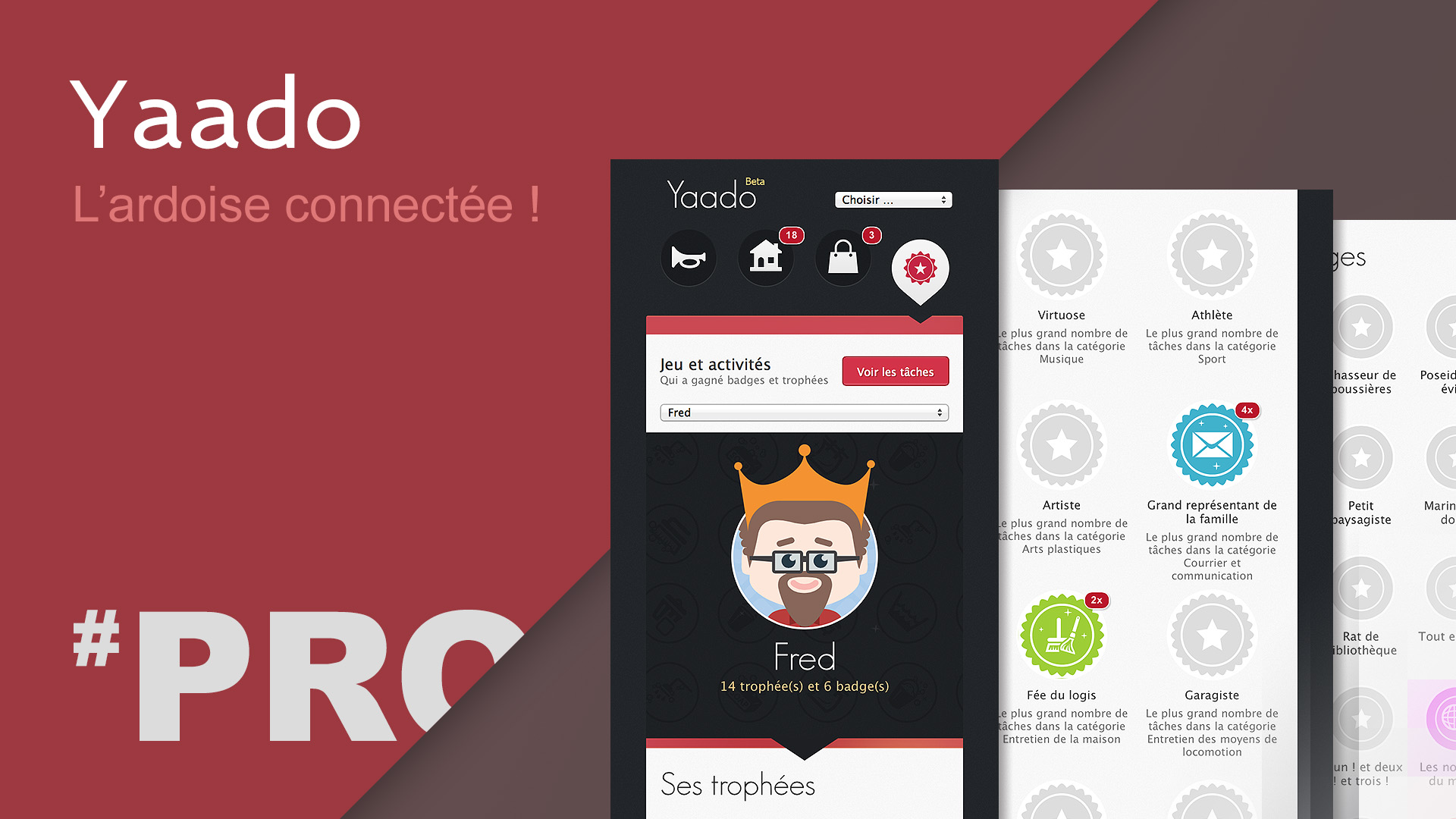 Pour ce deuxième Rétropixel, je vais poursuivre avec Yaado un projet réalisé avec David Bourguignon le plus cool des gourous Git et Ruby on Rails de la région. Sans lui ce projet ne serait qu’une succession de pages inertes, un design sans vie, vous l’aurez compris, David est un ami de longue date avec lequel j’ai réalisé de nombreux projets. Développeur de métier et photographe à ses heures perdues, nous divaguons souvent ensemble autour de concepts d’applications. C’est autour d’une table pendant un déjeuner, et après avoir chacun fait nos check-in respectifs sur Foursquare que l’on a trouvé intéressant, l’idée d’introduire du jeu dans les tâches ménagères de tous les jours. En motivant toute la famille à participer, en insufflant du challenge et en récompensant les actions par des badges à collectionner … Yaado était né !